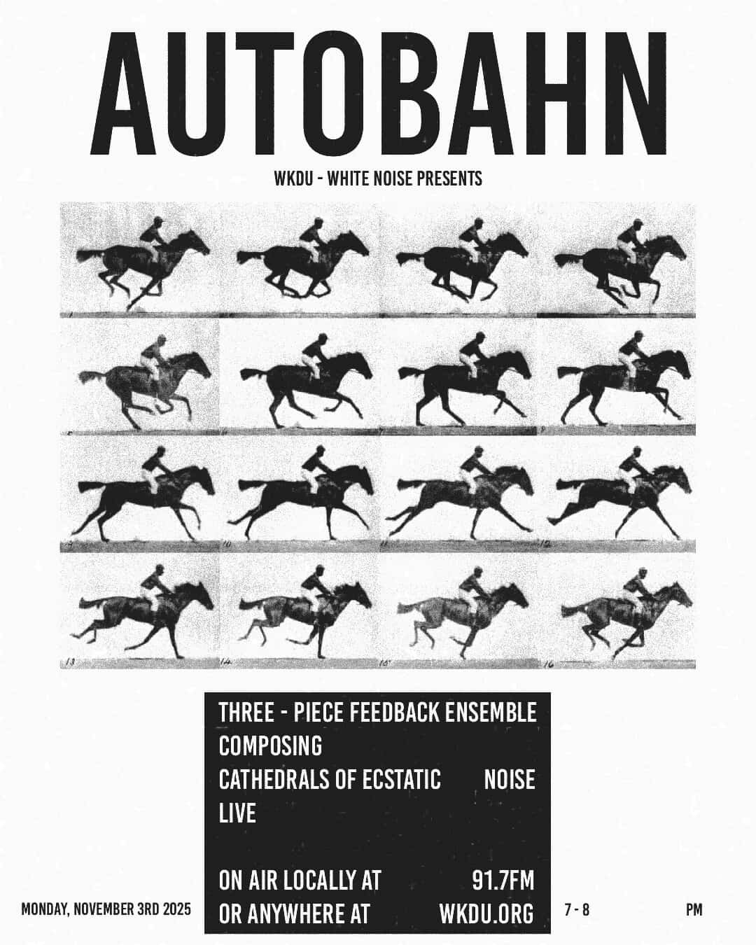 Don't miss the best rock band currently active. Autobahn, from New York City, vast-american skies of noise, Can for the insurgent age, bubblegum Glen Branca, three-pieces in orchestra, together, bodies in drone, for glowing return of strings, snare, cymbals-in total light.